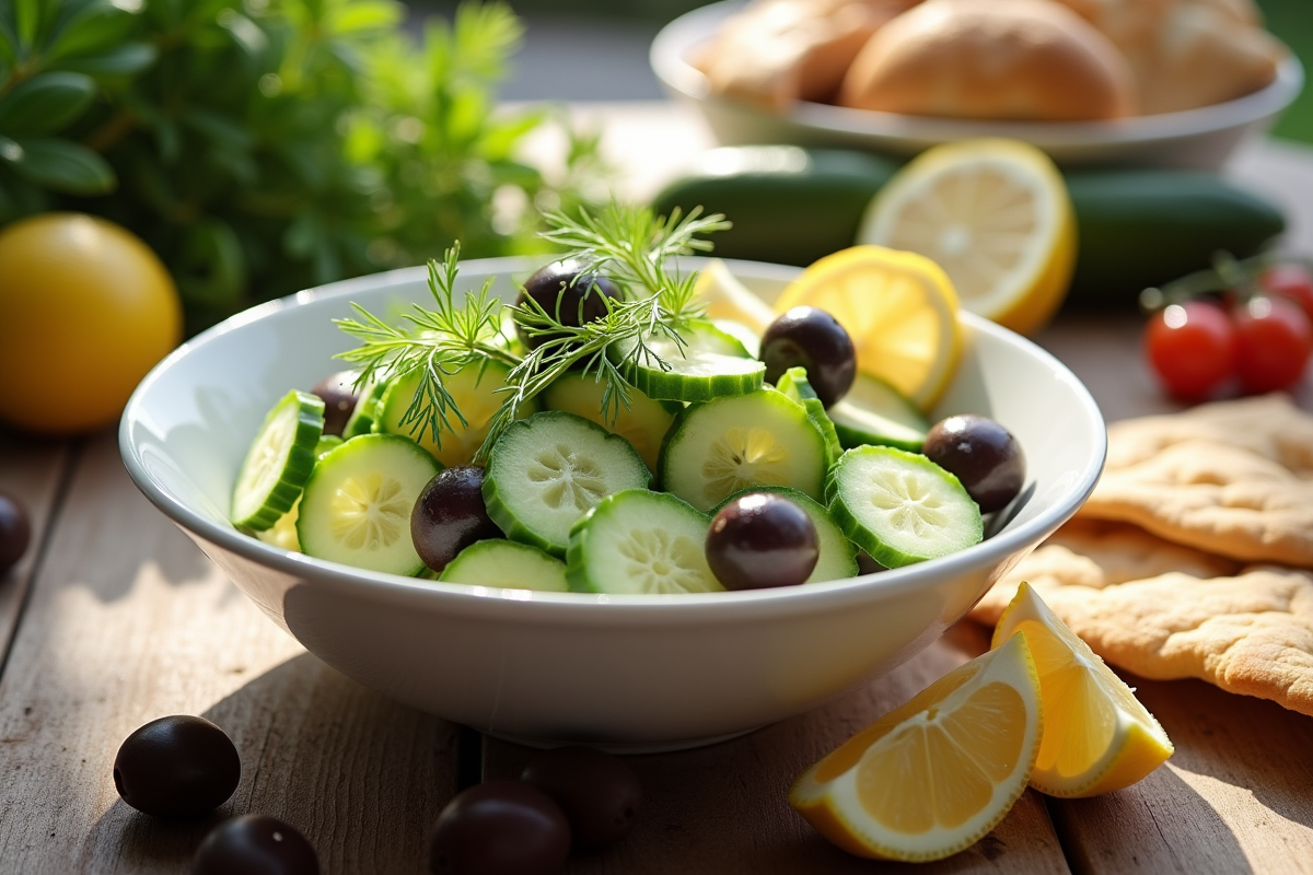 Quand vient le moment de servir, la présentation fait la différence. Placez le tzatziki dans un grand bol, nappez d’un filet d’huile d’olive vierge, parsemez de poivre noir fraîchement moulu, ajoutez quelques feuilles d’aneth ou de menthe. Pour varier, proposez en accompagnement :